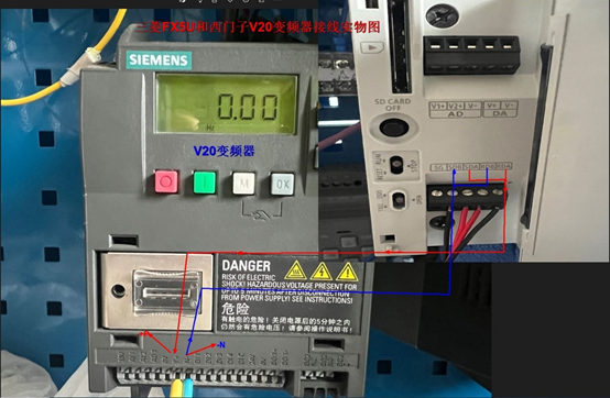 变频器和PLC实物接线图