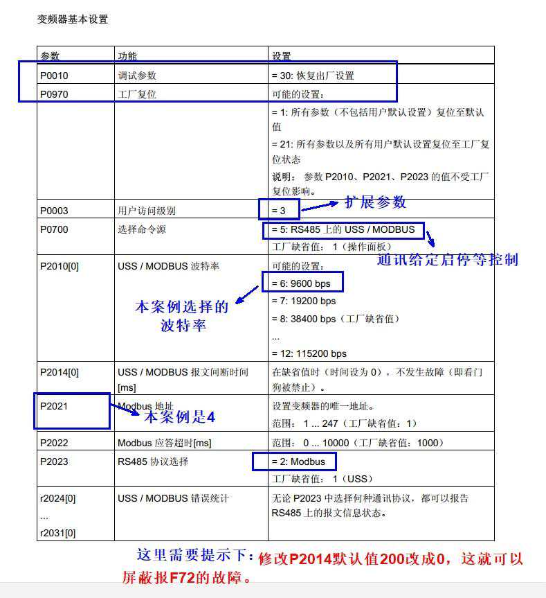 变频器通讯参数设定