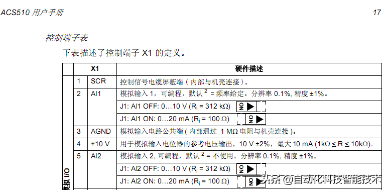 三、变频器有两个模拟量接受端子:AI1、AI2
