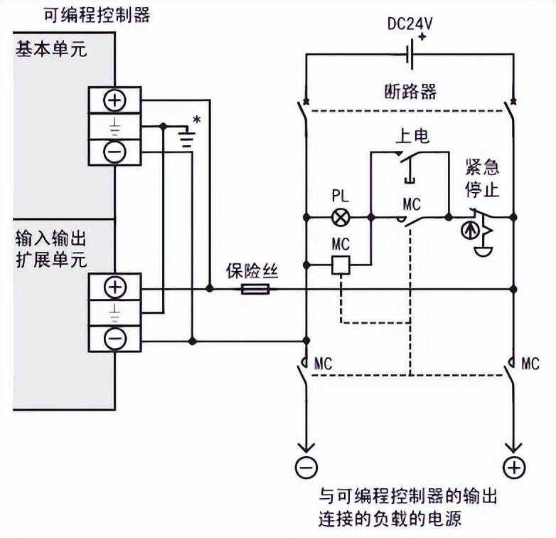 向基本单元、输入输出扩展单元所供给的电源为DC24V。