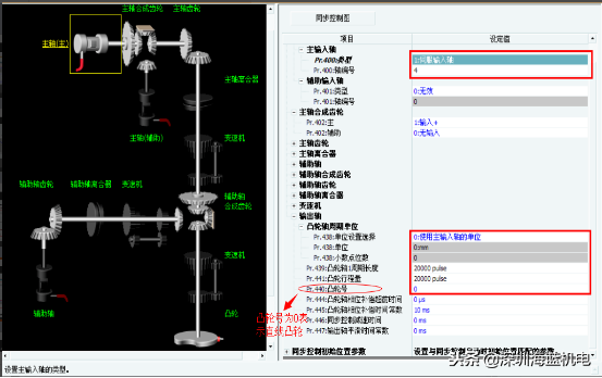 以下范例为将轴4作为输入轴,对轴1和轴2进行同步控制样本示例。(轴4作为虚拟伺服放大器进行驱动,轴1和轴2为凸轮控制)