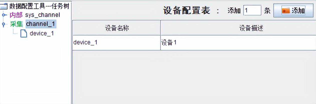 在左侧任务树中选中通道,新建一个设备,自定义设备名称,其余参数保持默认;