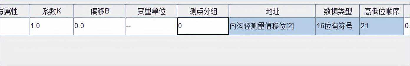 举例采集PLC中的INT型数组结构的变量内沟径测量值移位、下标为2、类型为INT的寄存器,那么新建一个测点,功能码选择读写数据(默认),地址填内沟径测量值移位[2],数据类型选择16位有符号,数据格式选择21;