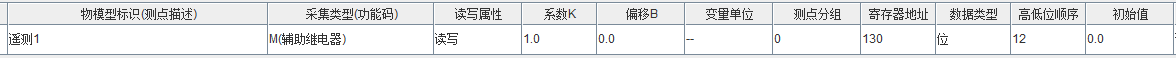 新建测点¶M寄存器¶举例采集一个M寄存器地址为130,那么新建一个测点,功能码选择M(辅助寄存器),地址填130,通常情况下数据类型选择位,数据格式默认。
