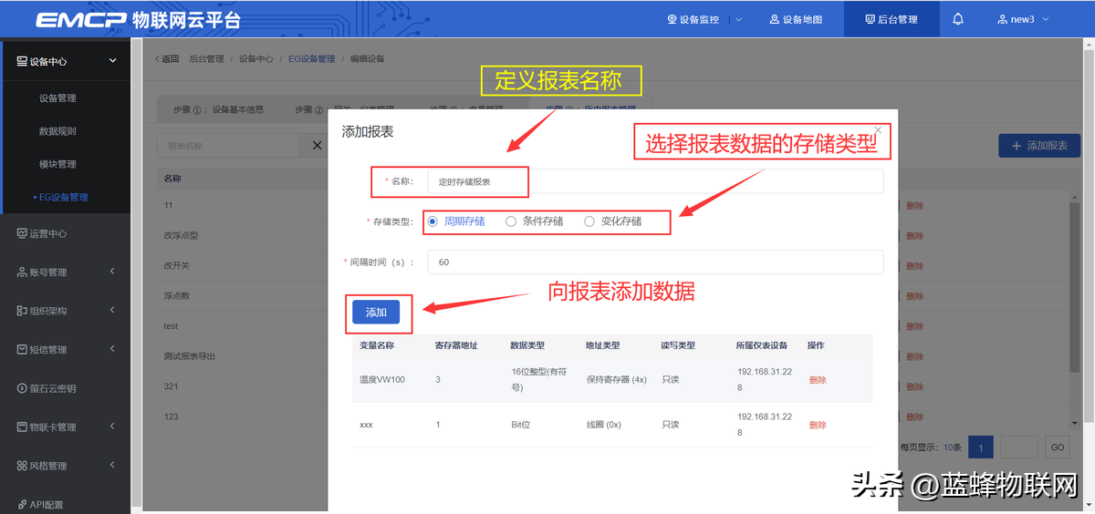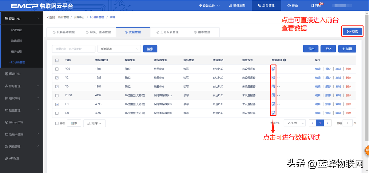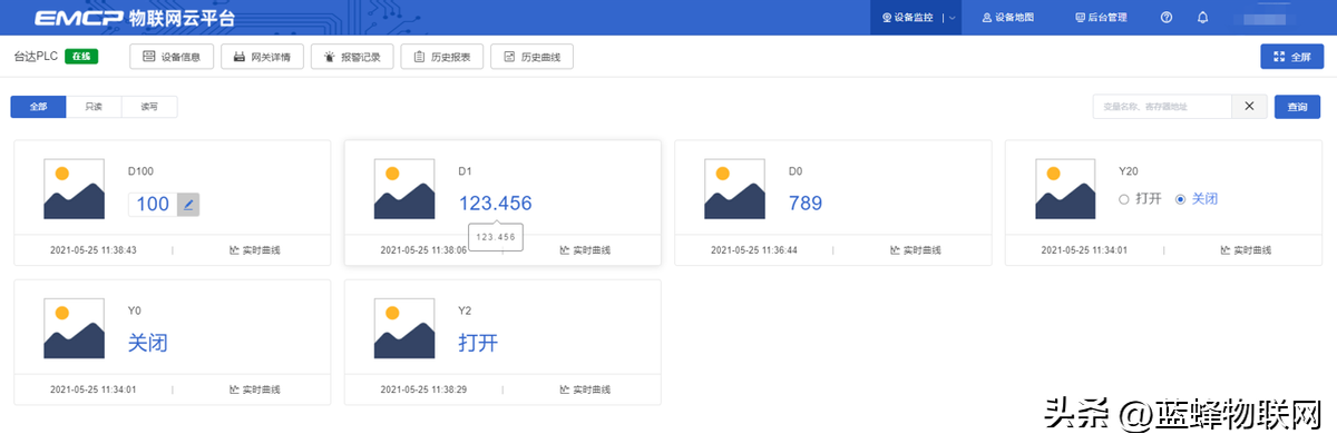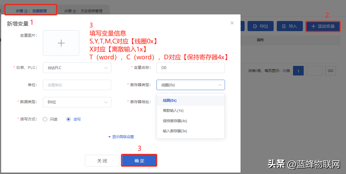 PLC各寄存区变量在平台添加填写示例如下图所示:
