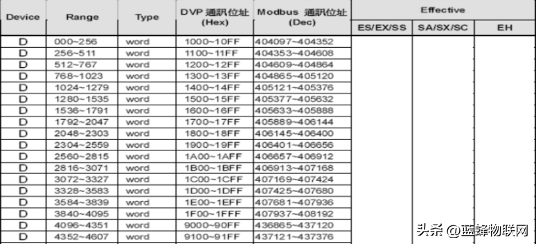 PLC内部寄存器与MODBUS地址对应关系在《台达PLC通讯协议》中有详细说明,如下图: