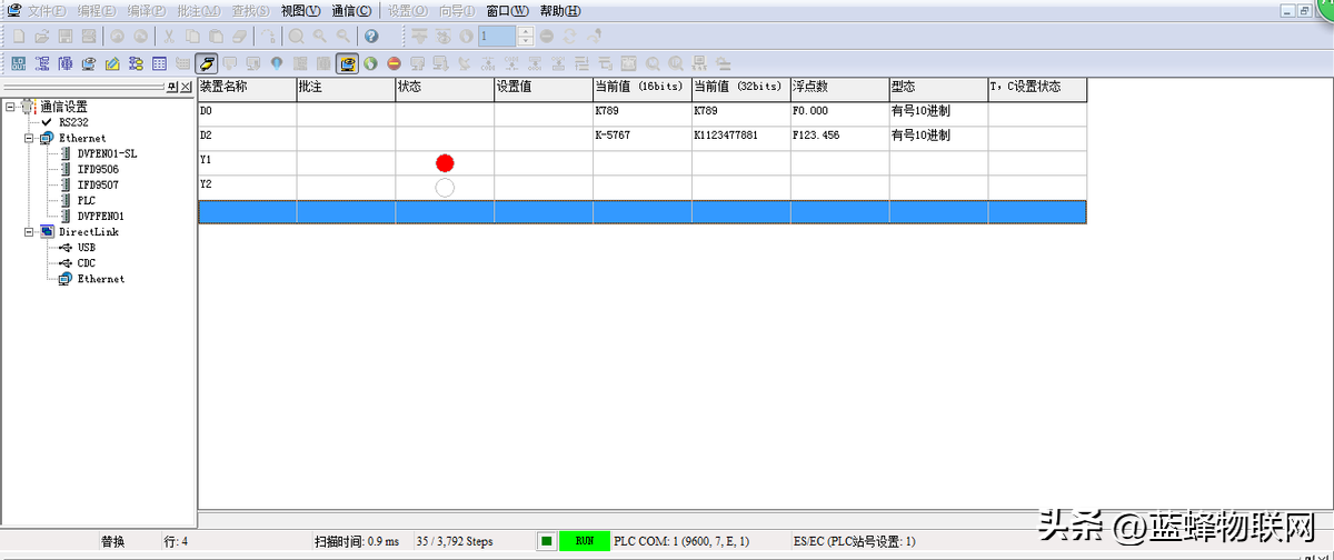 台达PLC内部集成了MODBUS-RTU功能,按如上对COM2口的通讯设置就完成了台达PLCMODBUS从站的建立。