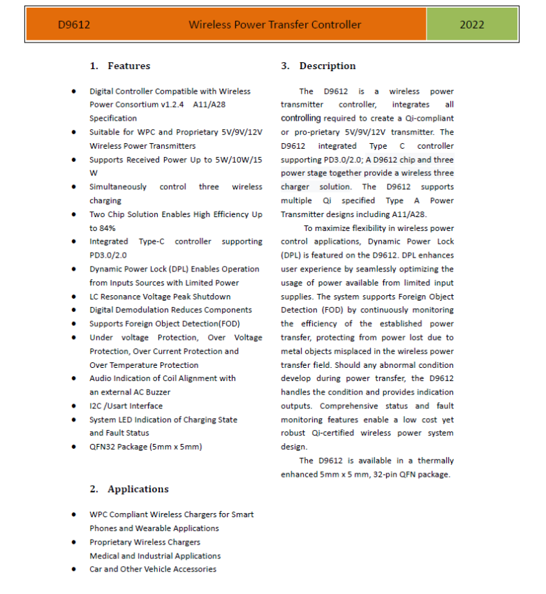 CV90365支持、最新标准,支持单线圈/多线圈无线充电应用,支持Qi标准BPP5W、苹果7.5W、三星10W、EPP15W充电;支持客户私有协议,功率高达100W。