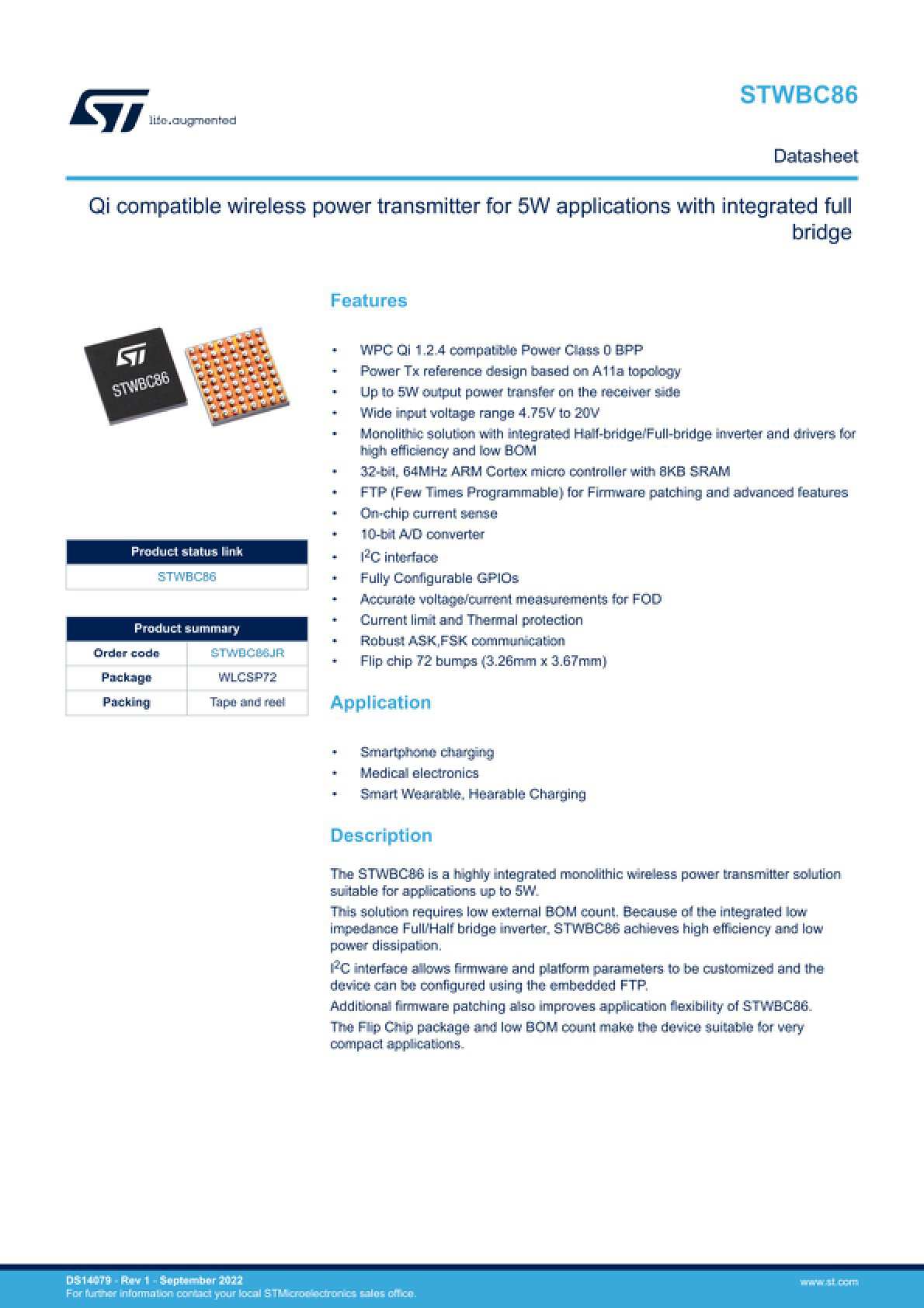 美芯晟MTQ5807MTQ5807是一款适用于汽车应用,最高支持15W的无线充电发射端芯片。它符合最新的WPCQi规范并支持(认证)和UFCS等多种私有快充协议。在芯片设计时采用了美芯晟专利技术Q值检测技术,实现以极低的功耗、更精确地检测到异物,提高系统可靠性。