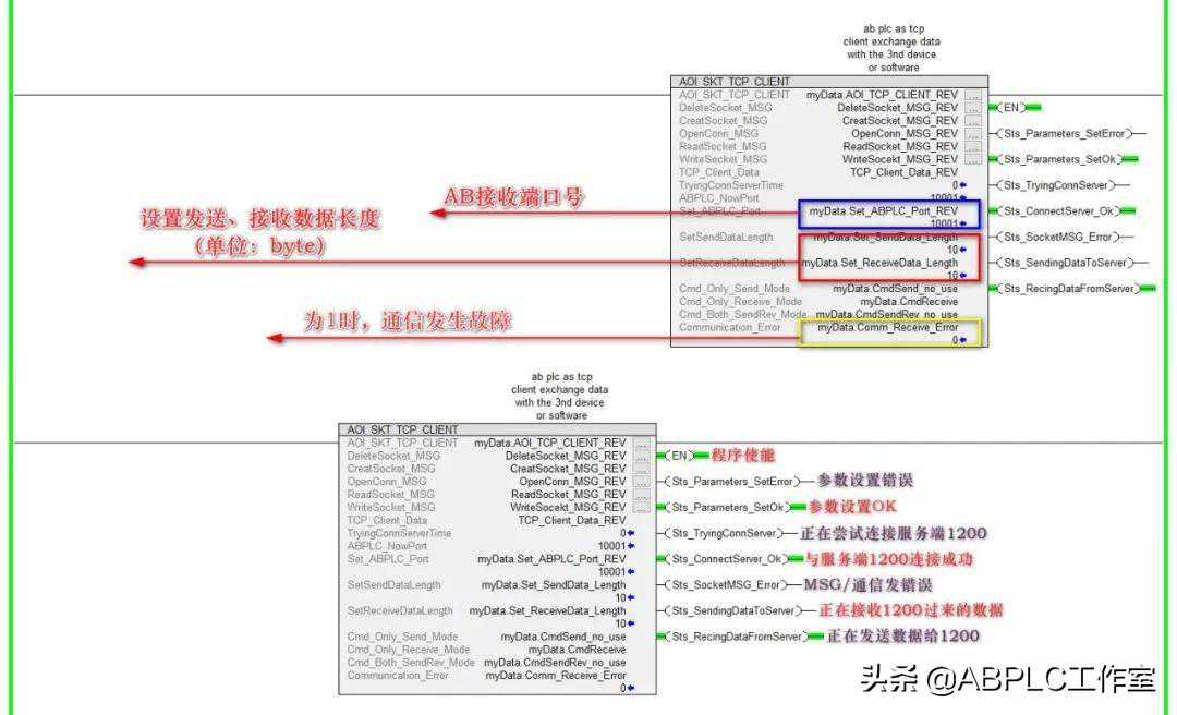 已正式上线的某项目,1台西门子CPUS7-1200与2台ABCPU1769-L18ER,直接通过开放式TCP协议进行通信交换数据。