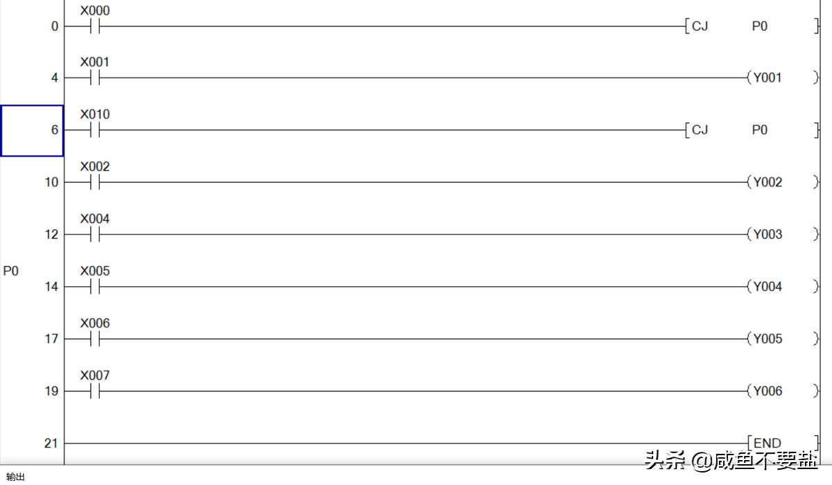 指令操作数:CJ指令的目标元件是指针标号,范围是P0~P63(运行变址修改)。CJ指令可以缩短程序的运算周期和双线圈的使用!