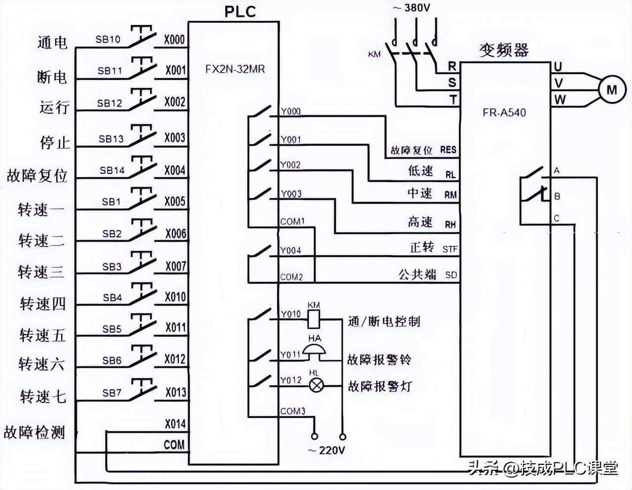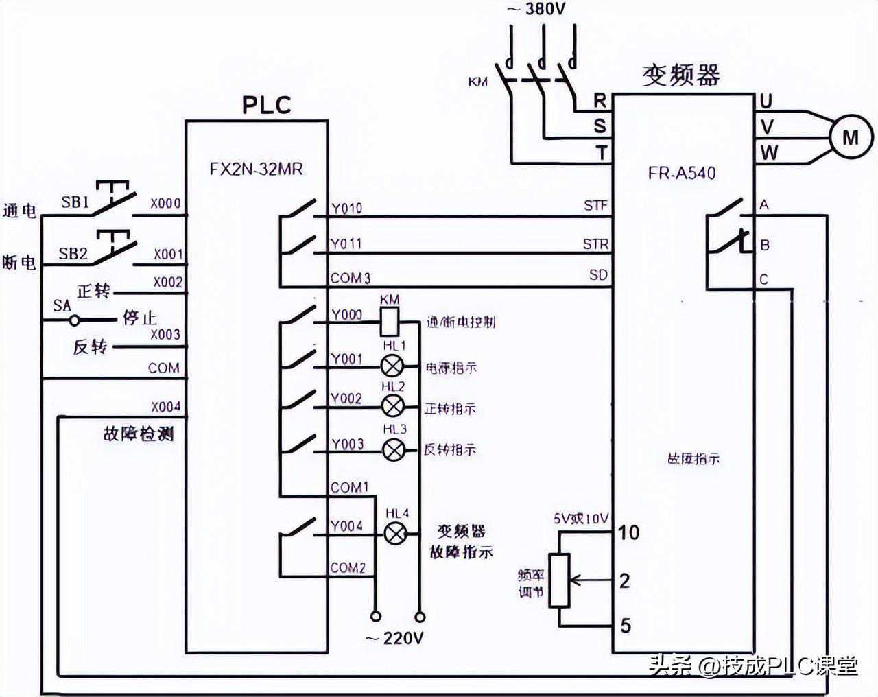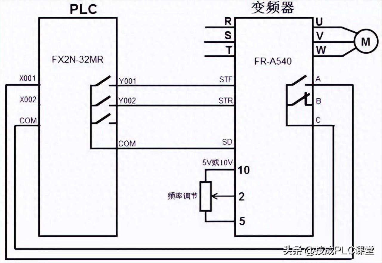 1.PLC与变频器的硬件连接线路图