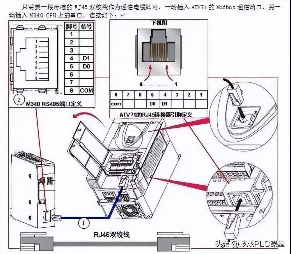 PLC通过Modbus监控变频器的运行是工业中较常见的应用,本文以施耐德M340PLC与ATV71变频器为例,简要介绍PLC与变频器之间Modbus串行通信的过程,包括硬件接线、变频器参数设置、硬软件组态、上电调试等,实现在PLC上远程控制ATV71变频器的故障初始化,启动/停止,正转/反转,频率给定等。