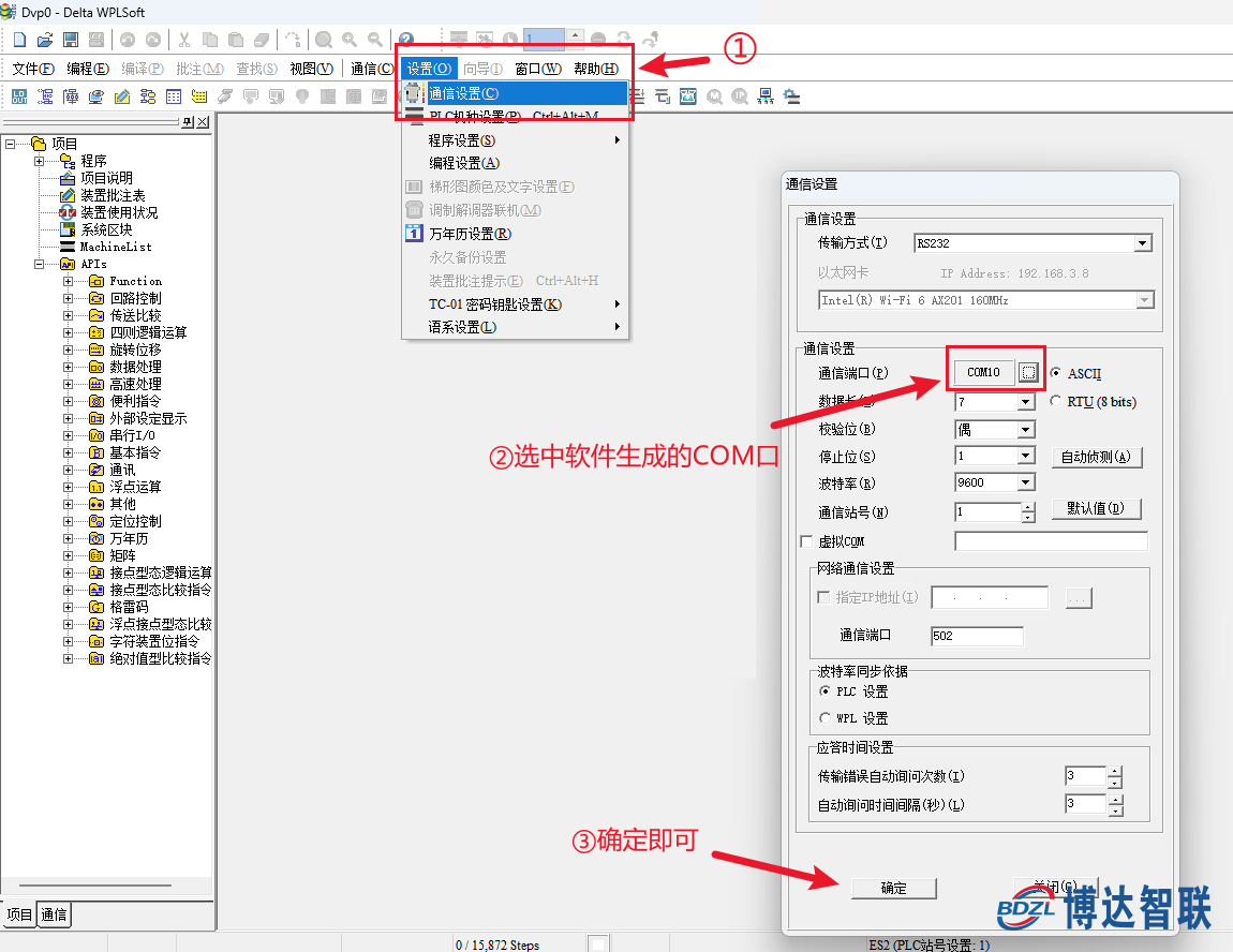 将9针串口头连接至232转换线,232转换线的圆口插入PLC中,再将9针串口头的连接线连接网关对应的COM口(无法连接成功可尝试反接)