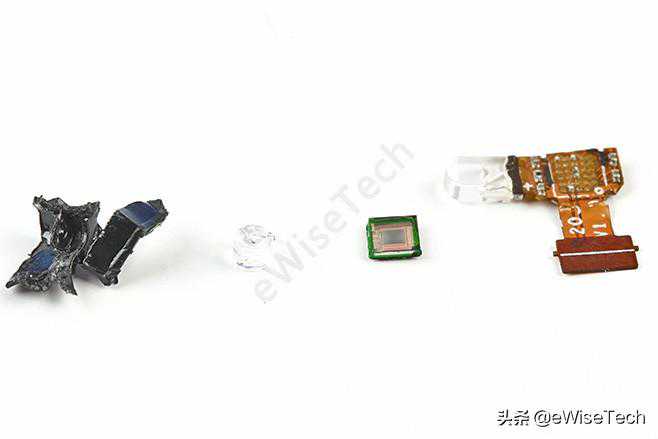 拆开之后我们可以看到,这个摄像头构造也是比较简单的,一个黑色塑料外壳,一片镜头,一个CMOS以及电路板构成。拆开后摄像头只有一个单独的镜片,镜片厚度2mm,不过在CMOS上面我们发现紧贴在CMOS上面还有一层镜片。