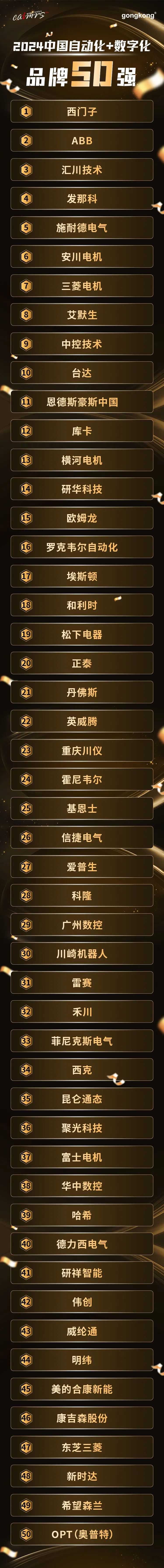 总体而言,工业自动化领域的竞争日趋激烈。在全球化的市场布局下,50强品牌紧跟行业动态、洞察市场需求,实现了业务的多元化和持续增长。无论是工业自动化、电气控制,还是工业互联技术、机器人技术等领域,它们都能提供一站式的解决方案和专业的技术支持。这种全方位的能力使得它们在市场中占据了重要地位,共同塑造了工业自动化和数字化领域的崭新格局。