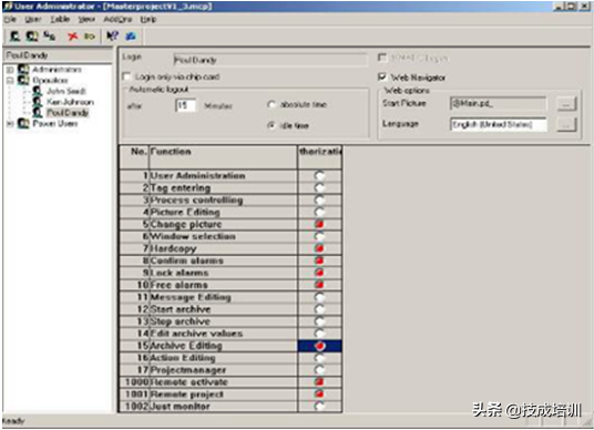 自由组态的用户组和管理权限;