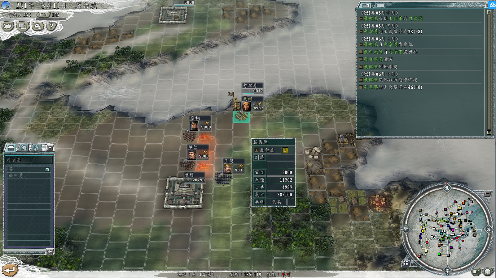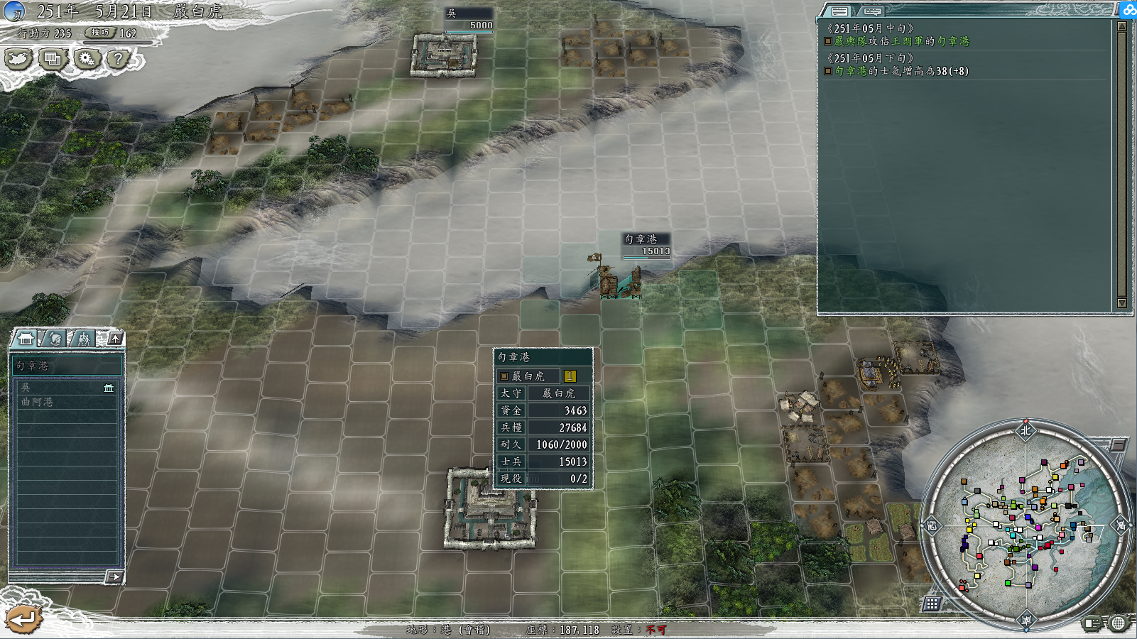 这一点很关键,一定要进港。不然就不知道要被王朗给伪退去哪里了。