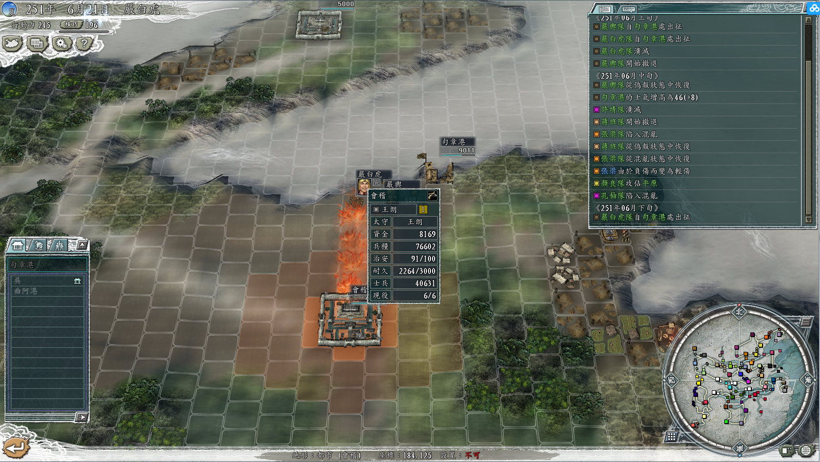 需要注意的是,因为我们城里没有人,治安会非常的差,很容易出现贼兵什么的。这玩意刷的位置和刷的时间很不固定,有时候刷到吴城的左边位置,就很麻烦了。