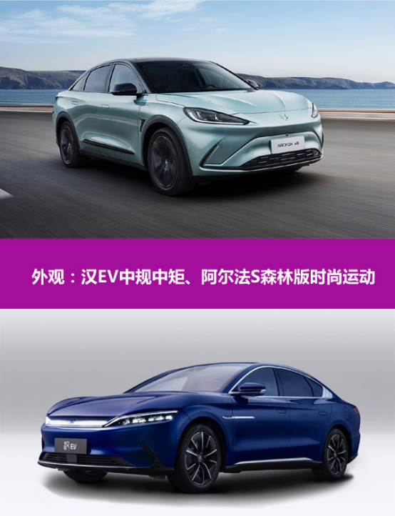 外观:阿尔法S森林版时尚运动、汉EV中规中矩