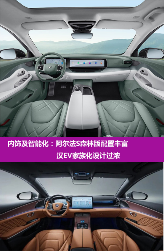 内饰及智能化:阿尔法S森林版配置丰富,汉EV家族化设计过浓