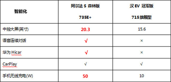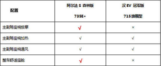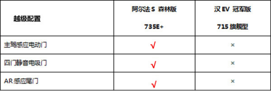 配置:阿尔法S森林版一应俱全,汉EV略逊一筹