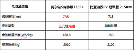 从数据来看,极狐阿尔法S森林版,搭载188.8Wh/kg的三元锂电池,综合续航可达735Km,在2023懂车帝夏季测评中,阿尔法S的高温续航达成率在同价位中最高,排名第一。比亚迪汉EV整车质量2100Kg,搭载150Wh/kg的磷酸铁锂电池,综合续航为715Km。