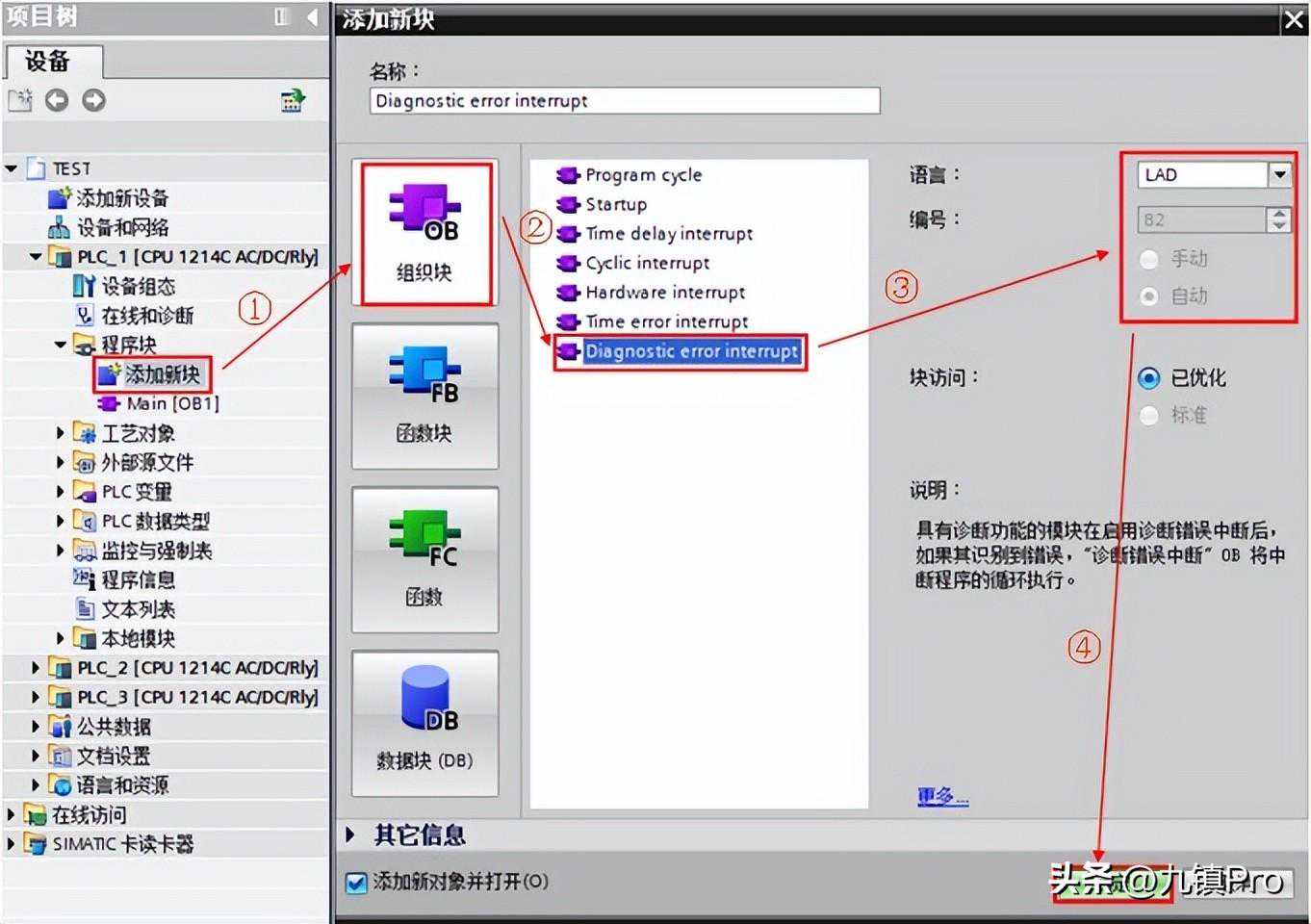 1、按如下步骤创建诊断错误OB82。如图2所示。