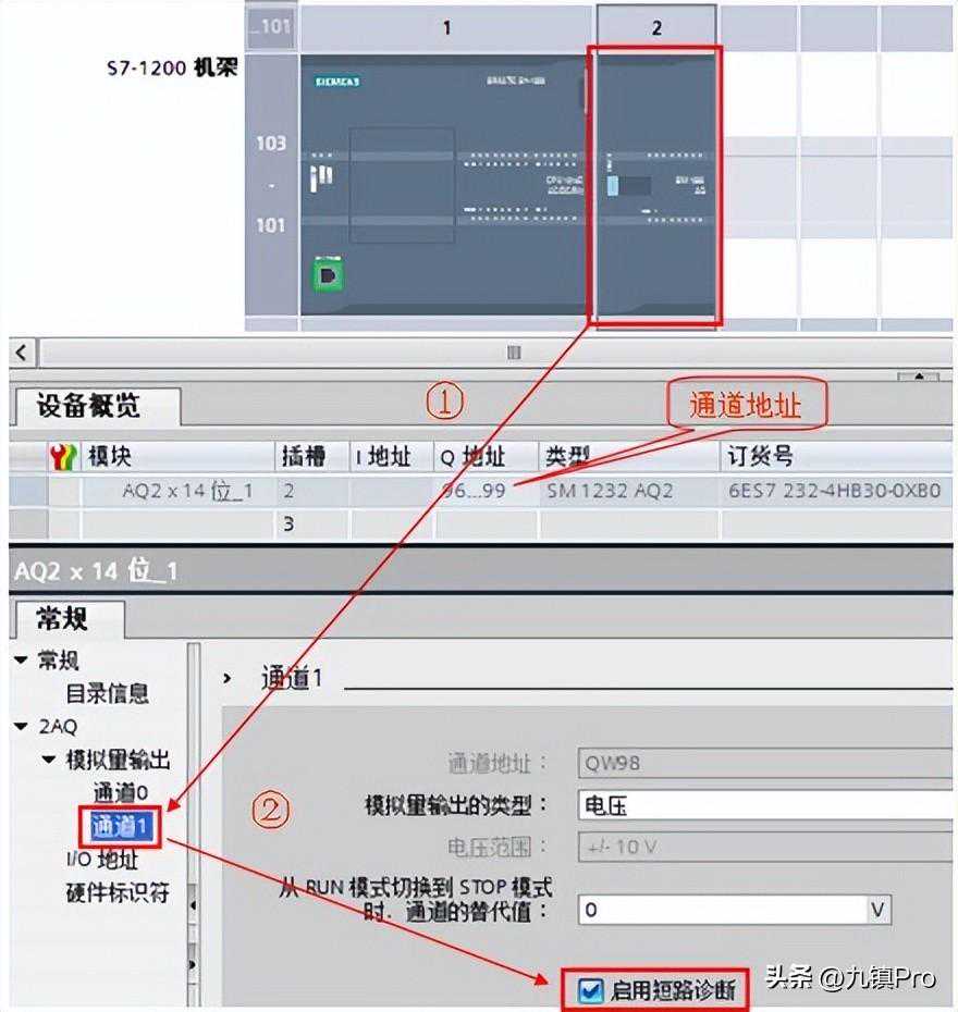 例如:模拟量输出模块SM1232的电压输出通道,对于通道1使能短路诊断,当通道1出现短路错误时,随即触发诊断错误OB82,此时可从OB82的启动参数中读取诊断信息。