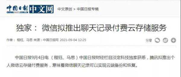 微信打算推出的这项付费服务就是聊天记录云备份,如果真的这样做,确实可以解决本地聊天记录存储冗杂、迁移麻烦的问题。