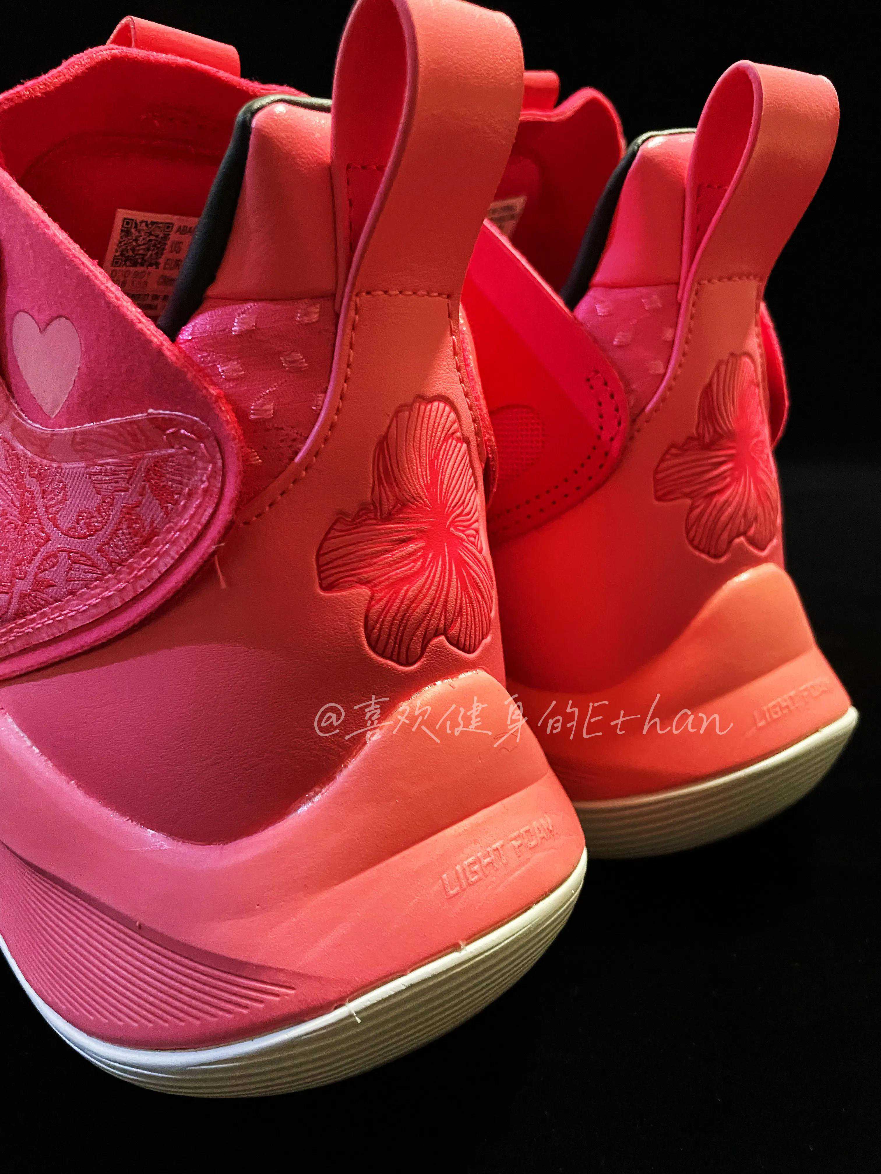 CJ1,一双被低估的实战好鞋,当初对它充耳不闻,现在对它爱不释手,蜜桃粉的配色,绝对是球场上的霸主,鞋面鸢尾花的刺绣设计,真的非常的有质感,鞋后跟也有鸢尾花的设计,这难道是CJ麦科勒姆的标志了吗,就像罗斯那经典的玫瑰一样绚丽多姿,鞋面布面皮革拼接,不是很硬也不是很软,强度很高,恰到好处吧,在运动中不会卡脚,鞋帮处的爱心,真的非常符合情人节的主题啊,太好看了吧!