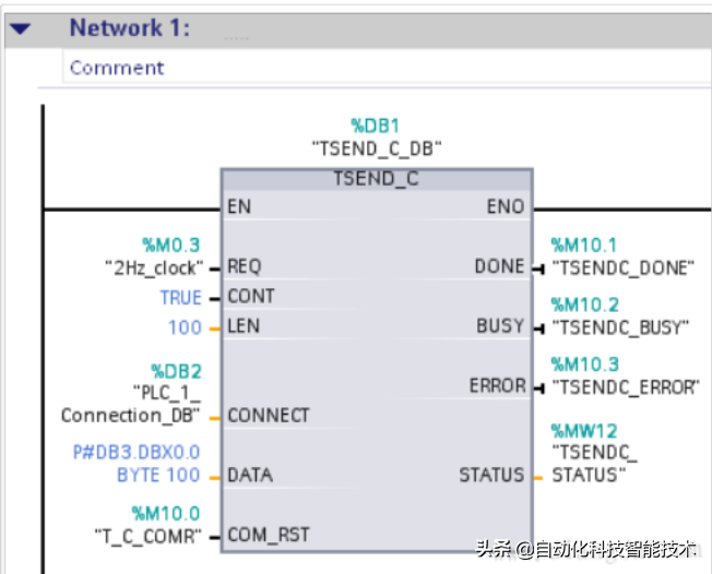 ①S7-1200将DB3里的100个字节发送到S7-300的DB2中