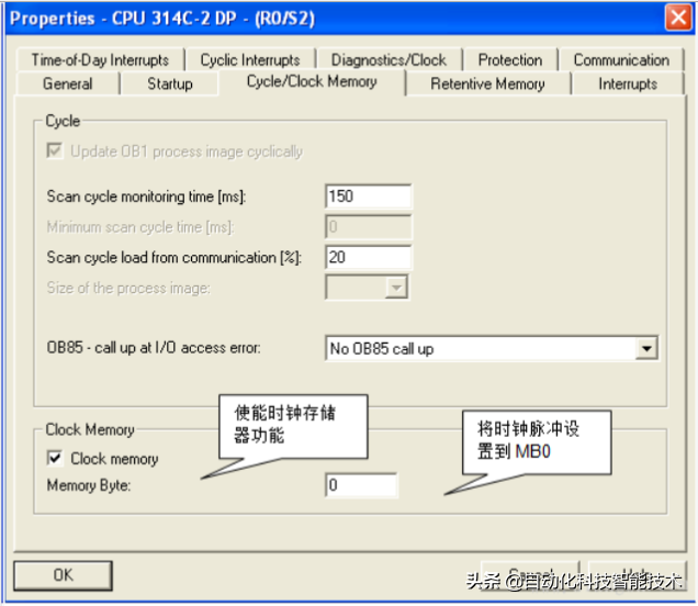 为了编程方便,我们使用时钟脉冲激活通信任务,在CPU的“Properties>”“Cycle/Clock