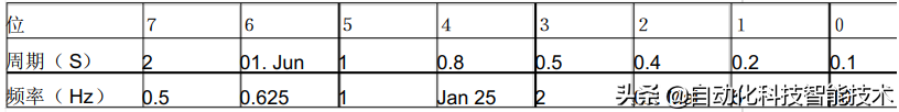 每一个时钟位都按照不同的周期/频率在0和1之间切换变化,见表1。
