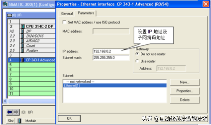 配置“CP343-1”模板IP地址为:192.168.0.2,子网掩码为:255.255.255.0。如图6所示。