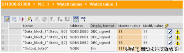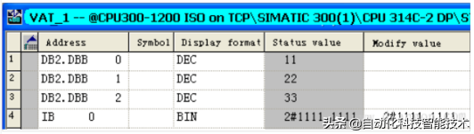 ②S7-300将输入数据IB0发送给S7-1200的输出数据区QB0。