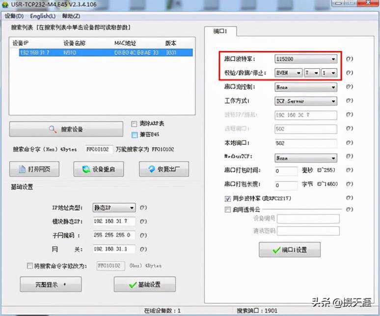 ②打开USR-TCP232-M4,根据FX3U通讯参数设置N510,如下图红框处设置;