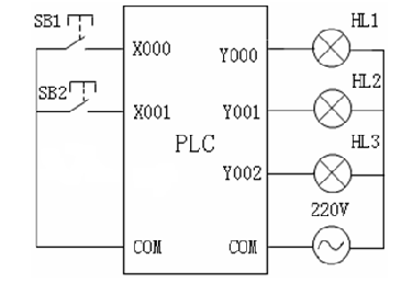 在进行程序设计时,首先进行控制系统的分析,安排好I/O地址分配,画出PLC系统的I/O接线图。所谓I/O接线图就是在图纸上画出PLC控制系统中需要用到的输入设备与输入继电器的对应关系,输出设备与输出继电器的对应关系。如图所示。