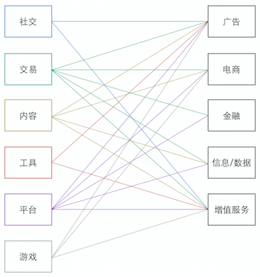 图示对互联网产品及相应的变现方式做了一下总结: