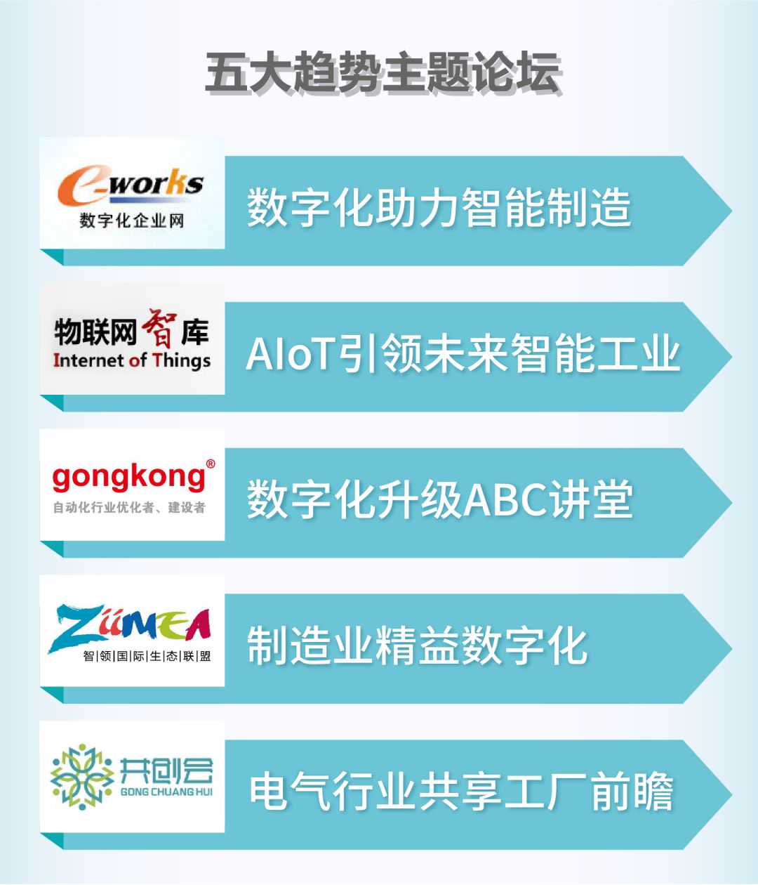 围绕精益化、自动化、物联网、数字化和共享工厂等智能产业发展的五大主题论坛,知名机构组织、行业领导和院士专家战略解读,赋能中国企业转型升级。