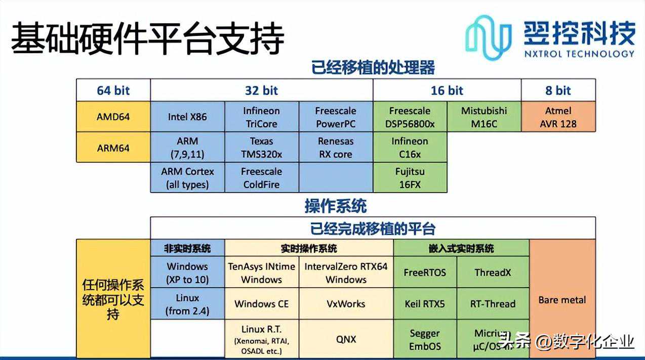 面向工业自动化市场,NXTOS提供差异化的技术实现,例如,NXTOSN1系列采用基于Cortex-M4处理器单芯片方案,除了支持IEC61131-3编程外,可以支持全功能EtherCAT主站,运行在独立控制器模式可支持9个从站,而运行在协处理器模式下则可支持16个从站,最小EtherCAT周期可稳定运行在500µs,同时可切换为支持PROFINETIODevice固件版本支持RT级别的通讯,最小通讯周期可达1ms。NXTOSN2系列平台则基于Cortex-M7处理器,可同时稳定支持PROFINETIODevice与EtherCAT主站同时运行,且以1ms的通讯周期运行,支持的EtherCAT从站个数则增加到36个。而NXTOSP系列采用x86架构则可实现125µs周期的EtherCAT通讯以及支持高达256个EtherCAT从站。未来NXTOS会推出数字化与IEC61131-3深度融合的技术解决方案。