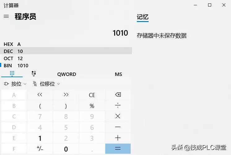 选择程序员后如下图所示,HEX:十六进制,DEC:十进制,OCT:八进制数,BIN:二进制数。如果是二进制转其他数值,选择BIN处输入需要转换的数值。