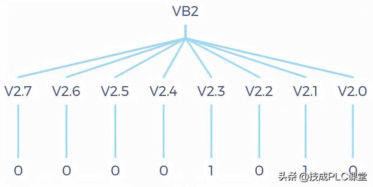 与哪个地址有关联?VB2,VB2=10,转换成二进制:00001010,所以=1。