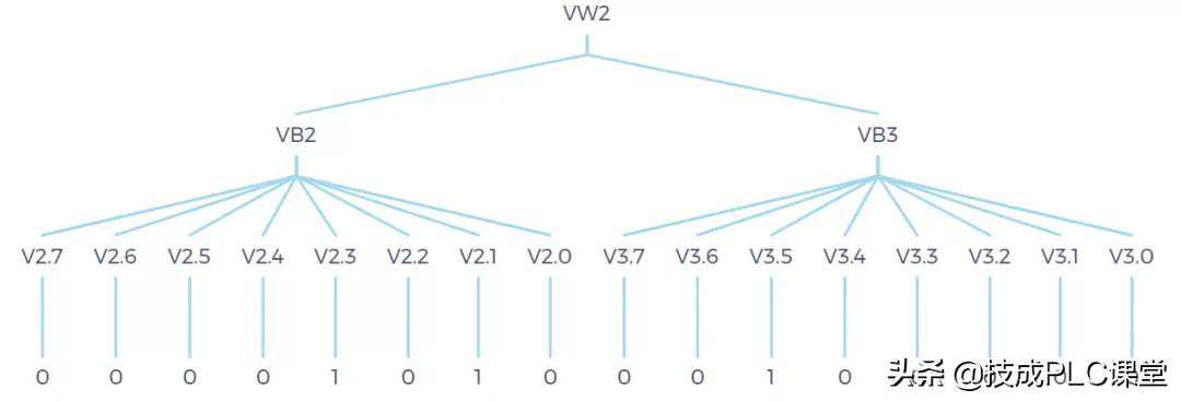 VW0:V存储区的字0,包含VBO、VB1,VB0包含—的8个bit位,VB1包含—的8个bit位。VW0中是最高bit位,是最低bit位,VB0是高字节,VB1是低字节。