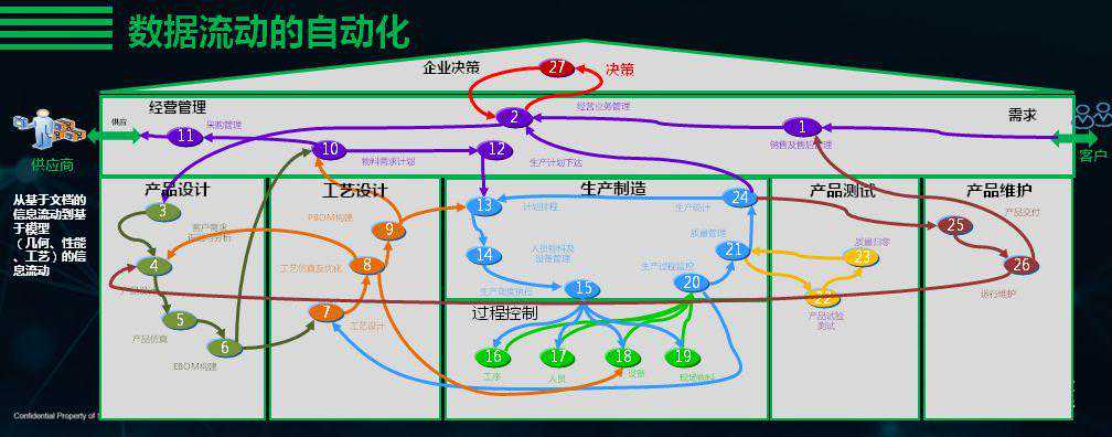 看不见的智能,就是数据在企业内部自动流动。当我们采集了客户的需求信息之后,这些信息就在企业内部研发设计、生产加工、物流配送每一个环节去流动,这些信息不断被加工、处理、执行,在这个过程中,正确的数据在正确的时间以正确的方式传递给正确的人和机器。