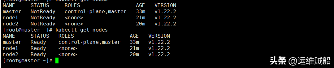 mkdir-p$HOME/.kubesudocp-i/etc/kubernetes/$HOME/.kube/configsudochown$(id-u):$(id-g)$HOME/.kube/configkubectlgetnodes5.在子节点上执行