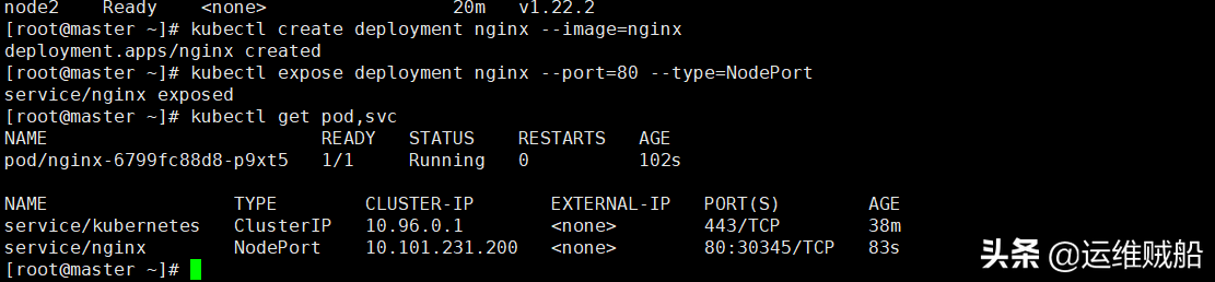 kubectlcreatedeploymentnginx--image=nginxkubectlexposedeploymentnginx--port=80--type=NodePortkubectlgetpod,svc