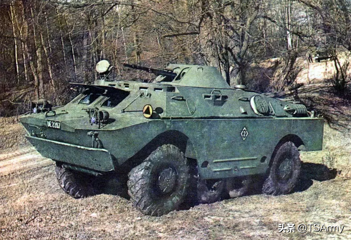 BTR-40是由前苏联在上世纪40年代末期,所研制的一种装甲人员输送车,在50年代初期开始装备,同时该型号也能兼任指挥车、侦察车等,全车长度5米,宽度1.9米,高度1.75米,战斗全重5.3吨,搭载一台直列6缸水冷柴油发动机,最大功率110马力,最快行进速度每小时80公里。