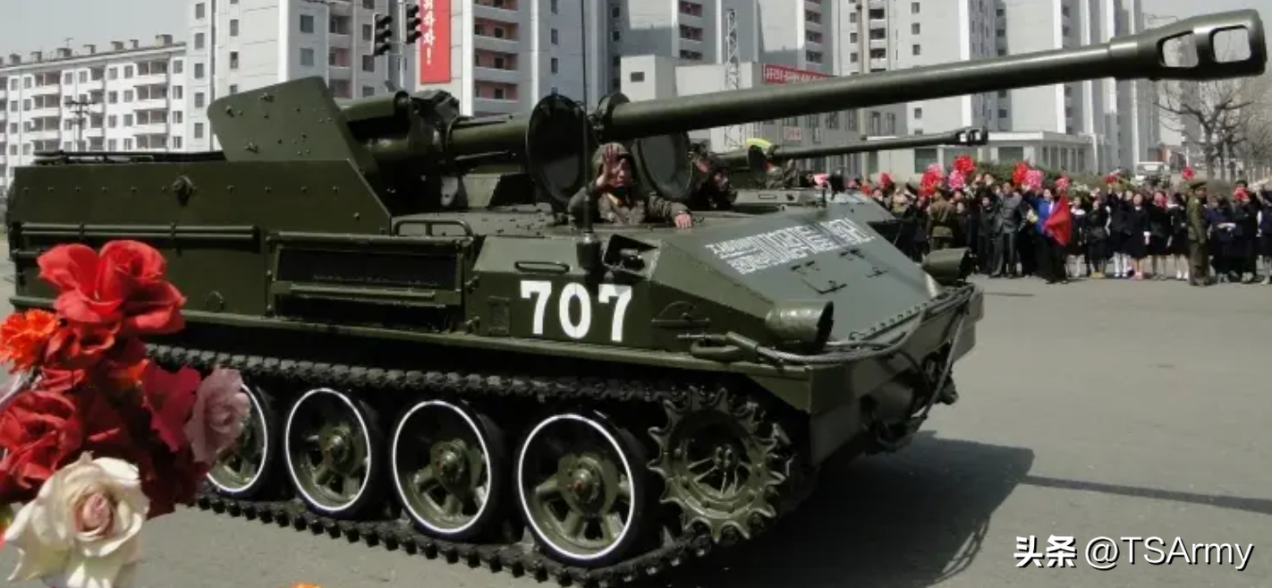 基于T-62主战坦克的底盘,朝鲜还研发了一种170毫米自行榴弹炮,被称为“谷山大炮”,又被外界称为“M1989式自行榴弹炮”,该型火炮系统默认可携带12枚炮弹,火炮最快射速每分钟3发,最大射程40公里,整个火炮系统战斗全重40吨。